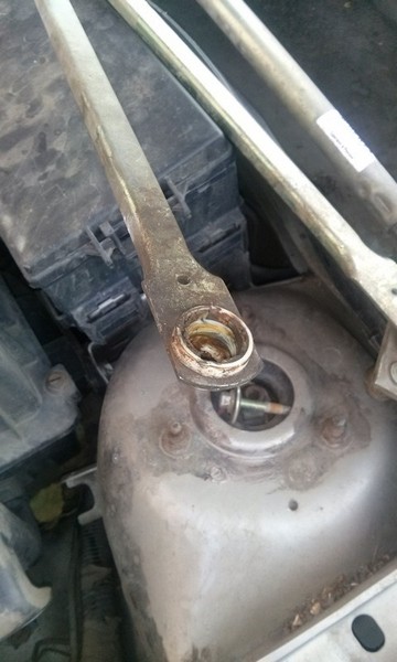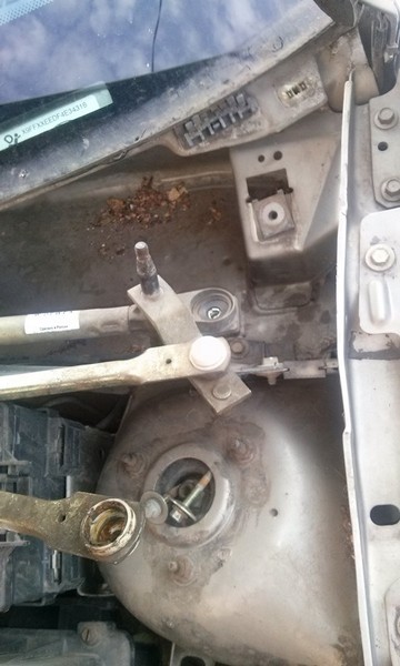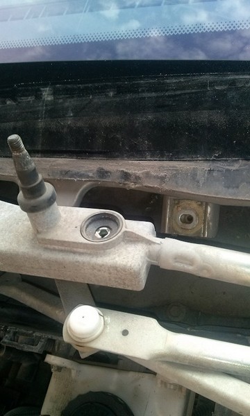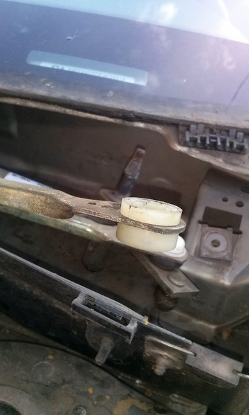Неполадка: как-то раз в дождь включил "дворники" и они, недолго поработав, просто остановились посередине "лобовухи". Полез я, значит, под капот к трапеции и обнаружил слетевшую с шарнира нижнюю тягу. Посмотрел, покрутил и понял, что пришёл конец пластмассовой втулке, что крепится в тяге и является своеобразным "коленом" для трапеции. На первое время там приколхозил кой-чего, дабы найти способ восстановления трапеции.
