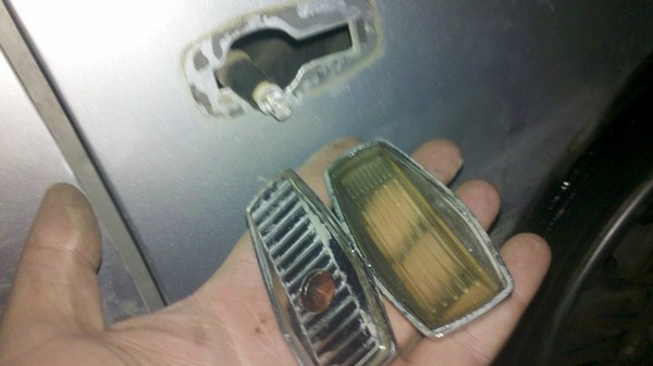 Уже давно у меня потух левый повторитель указателя поворота, тот, что на крыле. Вид у него был потрепанный, хром почернел, а стекло пожелтело. Решил я прикупить новые повторители. Хотел либо такие же, либо какие-нибудь другие, но обязательно под хром. Объездил с десяток магазинов ничего подобного не нашел, везде только стандарт, белые и оранжевые.