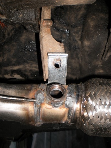 Тут вылезла проблемка — старая выпускная труба и резонатор были "старого образца", на два крепежного отверстия, новая же выпускная труба была под новую крепежку — без металлографитового кольца и болтов с пружинами и на три крепежных отверстия. Резонатор был куплен "нового образца", под три крепежных отверстия и второй датчик кислорода, который был благополучно заглушен обрезанным болтом + сварка.