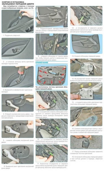 Снятие обшивки передней двери