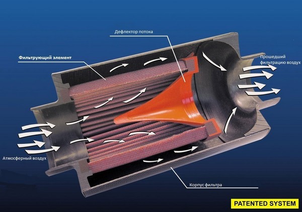 Если упрощенно, главная функция стандартного воздушного фильтра — очистка воздуха. И, как следствие, защита от попадания частиц пыли в ЦПГ (цилиндро-поршневую группу) двигателя. Но, получая эффективную фильтрацию воздуха, мы теряем в мощности двигателя. Обычные бумажные элементы оказывают большое сопротивление воздушному потоку, потому что материал фильтра очень плотен. Чем больше сопротивление — тем больше потеря мощности. Особенно это заметно, когда фильтр «забивается».