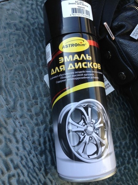 После подгонки всех частей отправились в магазин и купили эмаль для покраски дисков (черная, матовая).