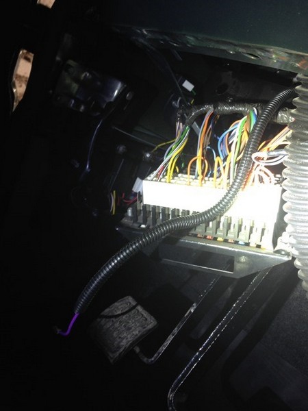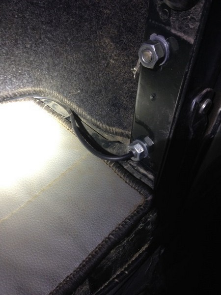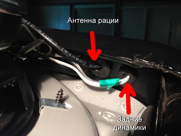 Левая сторона далась очень легко, резинка между кузовом и рамкой лобового, а также резинка в верхней части рамки позволила без особого труда протащить еще два провода для питания и массы рации.