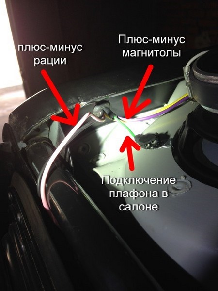 1. Плюс-минус рации решили тянуть внутри левой стойки стекла (там же протянут плюс-минус магнитолы и плафона освещения салона)