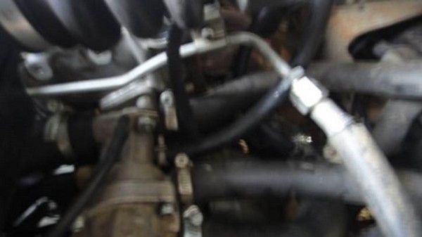 От форсунок отходит топливная рампа — это алюминиевая трубка, а к ней подходит резиновый шланг