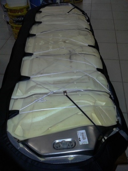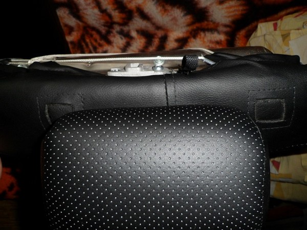 Шнурком более-менее натянул нашитый спереди новый кусок-заплатку, сделал в нем отверстия под штыри подголовника.