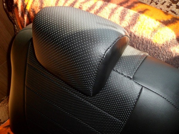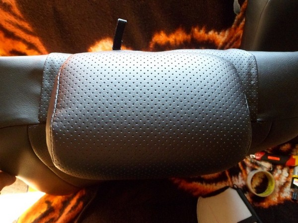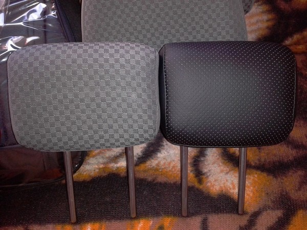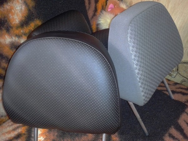 Начал с задних обновленных подголовников. Для сравнения серый сток и черная кожа.