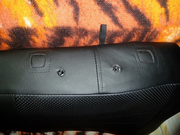 6. То, на чем я прокололся, опять же касаемо задних обновленных подголовников. На старых и новых задних подголовниках штыри расположены на разном расстоянии от средней оси сиденья, соответственно отверстия в чехлах могут не совпасть с гнездами в спинках сидений. Смотрел сегодня на официальном сайте, завод, действительно, об этом предупреждает, чего не было сделано продавцом в магазине, хотя я неоднократно говорил о своих новых задних подголовниках. Проблему я частично решил, благо остались ненужные чехлы на старые задние подголовники, кожа с которых и пошла на заплатки. Но тем не менее эстетический момент подпорчен, буду думать, как замаскировать заплатки поаккуратнее, правда снимать для перепрошивки чехол уже нет желания, может, справлюсь при помощи прозрачного клея и новой латки.