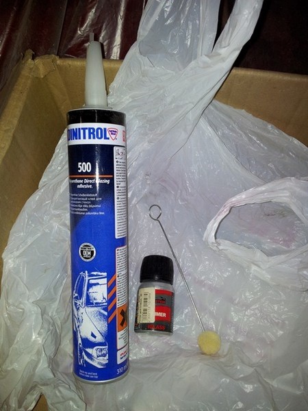 Набор для вклейки стекла (герметик, грунт праймер и тампон для нанесения).