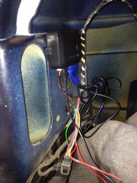Вот так я закрепил блок парктроника под обшивкой с левой стороны,
