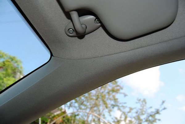 Работа проводится в салоне автомобиле. Устанавливаем зеркало парктроника на штатное зеркало. Провод просовываем под обшивку потолка, ничего не доставая (отлично сам везде пролазит, лишь немного надо отогнуть обшивку передней стойки).