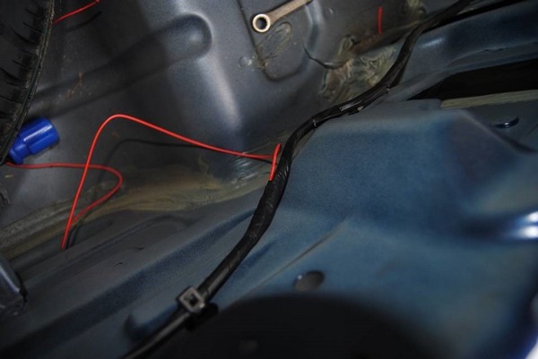 проволокой просовываем провод в багажник