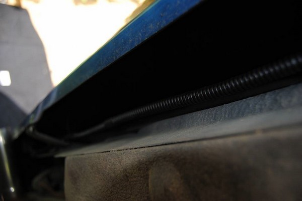 Проводим провода в гофре к заглушке в полу багажника и просовываем их внутрь.