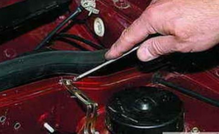 Произведем установку сигнализации Pandora DXL 5000 Ваз 2114 своими руками. Сначала установим датчики открытия капота, монтировать их нужно таким образом, чтобы они замыкались сразу же после открывания. Для этого изготавливаем кронштейн из пластины крепления электропривода замка двери Ваз 2114. Кронштейн деформируем так, чтобы его можно было прикрепить в нескольких точках.