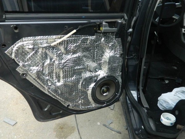 Разбираем задние двери, вырезаем вибру для установки колонок и протяжки проводов.