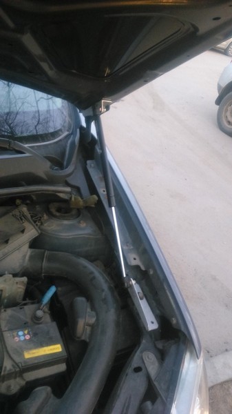 Откручиваем болт крепления фары, вкручиваем держатель упора из комплекта. Откручиваем гайку крепления капота, вставляем кронштейн из комплекта, закручиваем родной гайкой. Крепим упор. Время на все 5 мин.