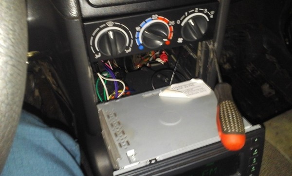 Для того, чтобы воткнуть штатку пришлось спиливать планки для удержания 1DIN магнитолы. Точнее названия планки не знаю прошу не ругать.