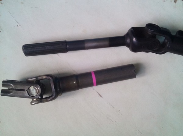 Появились неприятные стуки в руле при прохождении неровностей на повороте. Нашел в интернете информацию, как лечится эта болезнь. Дело в том, что сайлентблоки переднего подрамника изнашиваются и подрамник проседает. А так как вся рулевая закреплена на подрамнике, то весь механизм тоже уходит вниз. Телескопический рулевой вал уходит в крайнее положение, особенно при повороте. В крайнем положении на рулевом валу дяди японцы сделали ограничитель (накернение), что бы вал был не разборной.