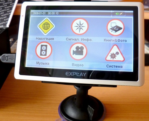 Сегодня приобрел навигатор Explay. Основное достоинство из-за чего я выбрал именно этот навигатор — две системы навигации GPS и ГЛОНАСС, что значительно повышает точность определения местонахождения (с вероятностью 99,5% лучше). Однако, данная модель может порадовать не только своей основной функцией, но и рядом дополнительных опций, которые всегда пригодятся в дороге. В навигаторе большой сенсорный TFT-дисплей 5 дюймов, он прекрасно отображает всю информацию. Навигатор работает как полноценный мультимедийный плеер и проигрывает форматы MP3, WMA, AVI, ASF, WMV. Думаю, теперь не буду скучать в ожидание кого-нибудь, а буду спокойненько смотреть фильмы. Так же в планах сделать стереовыход на магнитофон). При подключении устройства к компьютеру, оно определяется как съемный носитель, так что можно ещё как флешку использовать.