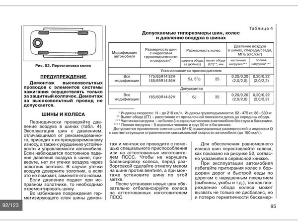 Рекомендации ВАЗ по давлению в колёсах Приора.