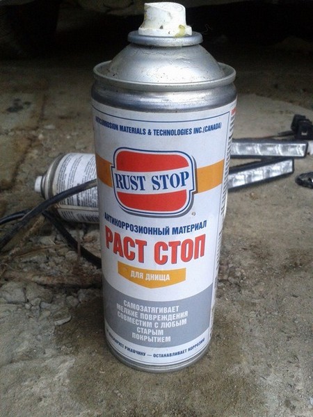 Прикручиваем и заливаем всё до кучи антикором RusStop для днища