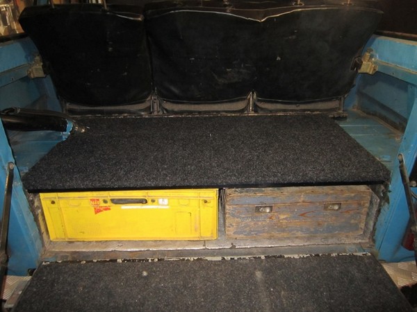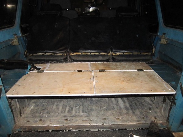 Доступ к ящикам возможен как сверху через крышки, так и сзади. Для чего нужно откинуть задний борт и вытянуть нужный ящик. В дальнейших планах сделать продолжение этой полки, которое будет являться полноценным спальным местом на двух человек при условии, что заднее сидение будет снято…