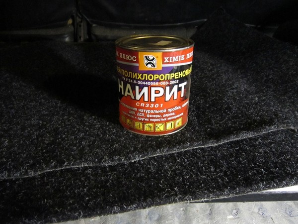 Сам ковролин клеил к фанере вот таким клеем: